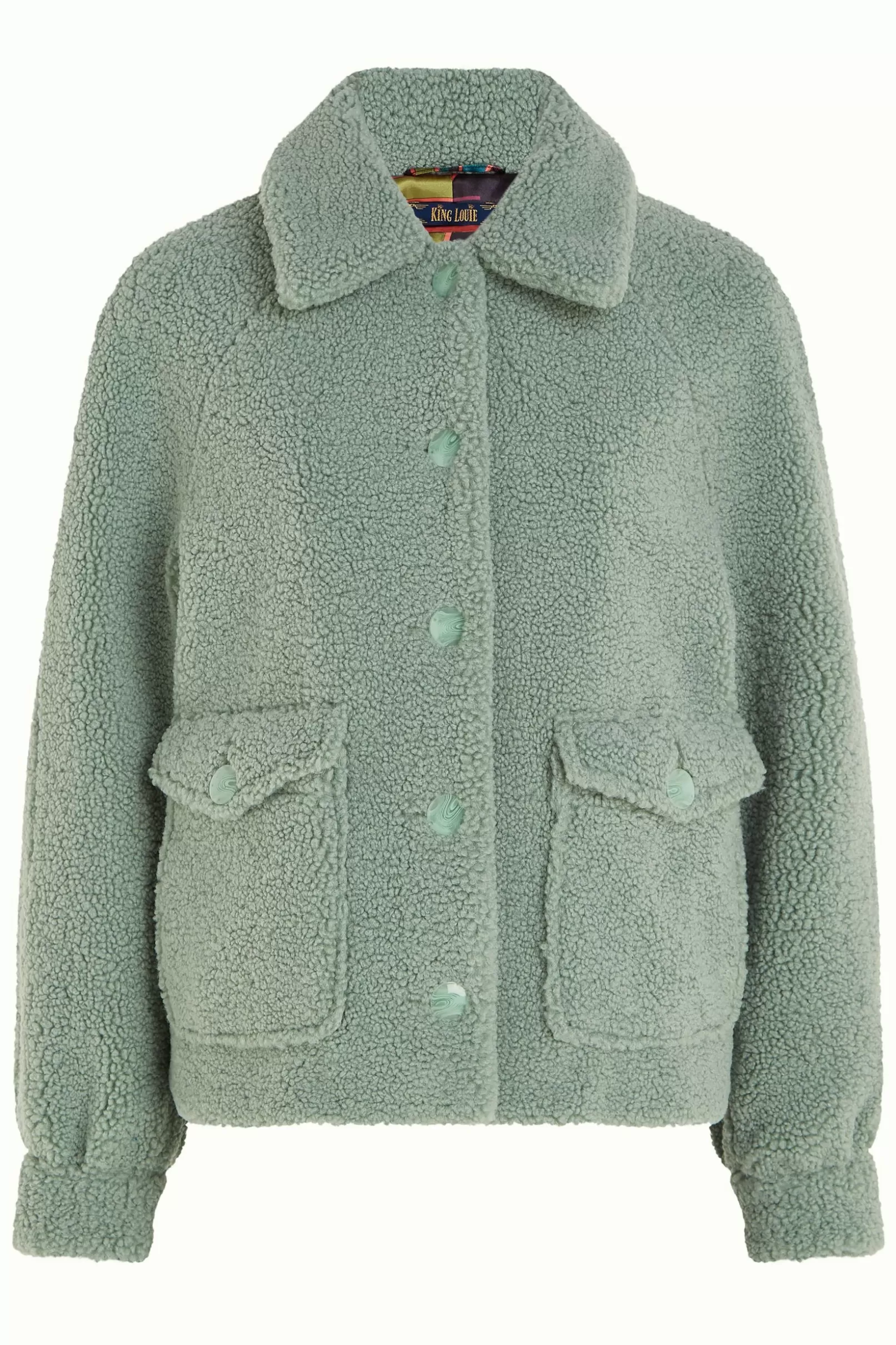 Product details Kort jasje Lange mouwenKnoopsluitingOpgenaaide zakkenNon-stretchTeddy stof productspecificatiesGemaakt …